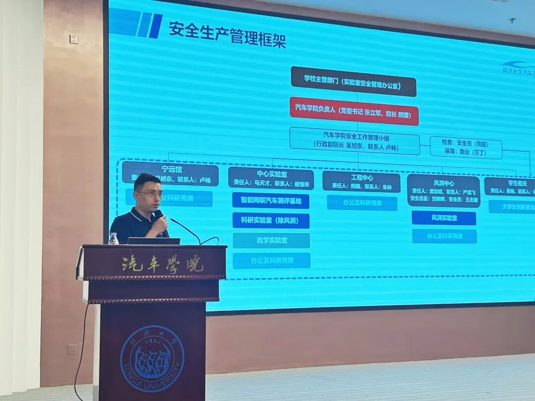 学院副院长吴旭东首先通报了暑期氢能实验室火情事件情况。随后,他介绍了近期实验室安全管理体系的升级情况,学院已推出“四级安全管理架构”与“实验室安全准入证制度”,未来实验室将实行持证准入机制,全面提升实验室安全治理能力。最后,他还对全院资产盘点与设备报废等工作进行了部署。