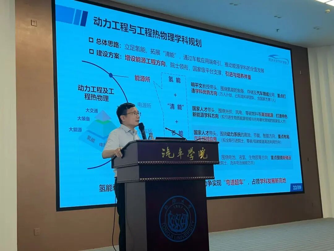 学院院长熊璐系统介绍了同济大学“十四五”收官与“十五五”开局之年的整体发展态势。他指出,学校正全面推进“数字化、绿色化、融合化”发展战略,旨在通过学科转型与治理能力提升,实现学校的跨越式发展。他进一步阐述了汽车学院在“十五五”期间以“氢能+智能”为双引擎,推动“数字化、绿色化、融合化、国际化”四化协同发展的新思路。同时,他正式通报了“动力工程及工程热物理”一级学科调整至汽车学院的重要决定,这一调整将进一步强化学院在氢能、清洁能源、储能等方向的学科布局,为学院未来发展注入新的活力。