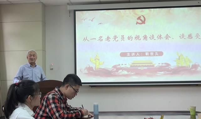 最后支部导师李健做了总结发言,他感谢靳老师为支部成员上了一堂生动的党课,希望大家在今后的学习工作中牢记靳老师的教诲,珍惜当下的学习生活环境,脚踏实地,刻苦钻研,不负老前辈的希望和嘱托。