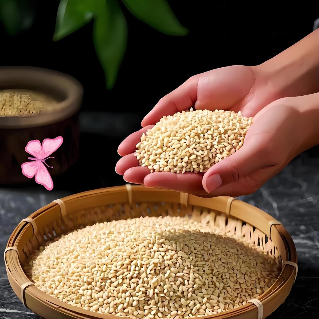 民间早有“寒露吃芝麻”的习俗,芝麻被称为全能营养库,可用于榨油和直接食用,也可作香料,医药和化工原料。芝麻按照种质色泽分为白色、黑色、黄色等,但以白芝麻和黑芝麻较为常见,也是广泛种植的优势品种。白芝麻含有大量的脂肪和蛋白质,还有糖类、维生素E、钙、铁等营养成分。