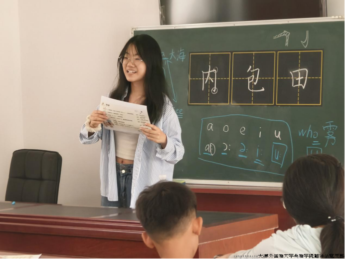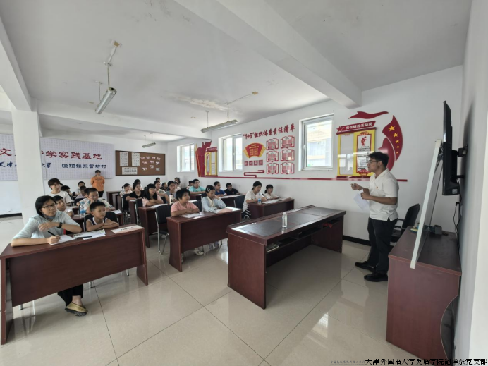 支部成员调研走访天津外国语大学蓟州外国语学校,了解现有教育教学情况,就党建联建达成初步意向,重点围绕英语教学开展深入沟通。支部师生党员在渔阳镇东营坊村千字文研学基地开展英语素养研学活动,面向全村小学生开设了一堂别开生面的趣味英语启蒙课程。翻译系学生林思瀚、韩雅文、徐若涵结合自身专业优势,用浅显易懂的方式把枯燥的语音知识变得生动形象,让小学生们在互动中提升了学习兴趣。通过生动有趣的教学激发学习兴趣,让教育赋能的种子在乡村扎根。