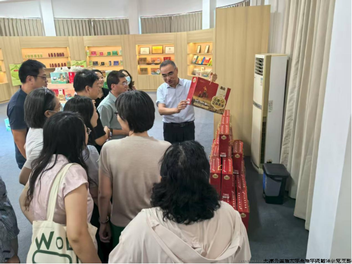 翻译系党支部走访了东营坊村智能充电桩停车场项目、林溪帮特色餐饮项目以及蓟州区圣农(天津)集团燕山食品厂生产基地。支部党员深入了解非遗麻酱鸡蛋生产技艺、农业企业发展状况及传统农产品生产工艺,深入调研了“驻村第一书记荐品”文创包装,即具有“非遗”书法特色的蓟州特色农产品文创包装如何助力传统产业拓宽市场的成功经验。此次调研为外语专业师生如何提高语言赋能本领,助力乡村振兴拓展了思路。