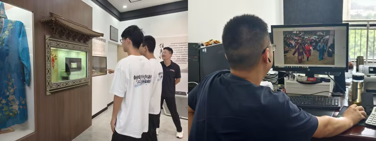 石台文化馆陈列着大量与目连戏相关的展品,收藏了涵盖文字、图片、影像等多种形式的丰富资料,全方位、多角度地呈现了目连戏的历史渊源与艺术特色。实践团成员仔细观赏每一件展品,认真研读每一份资料,对目连戏的起源、演变过程、发展脉络以及独特的艺术风格有了更为深入的了解。其间,文化馆工作人员热情地介绍了目连戏在石台县的传承与发展情况,以及其传统的传承方式、现代传播与创新举措,让成员们对目连戏的传承与发展现状有了更为清晰的认识。