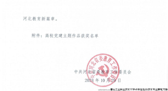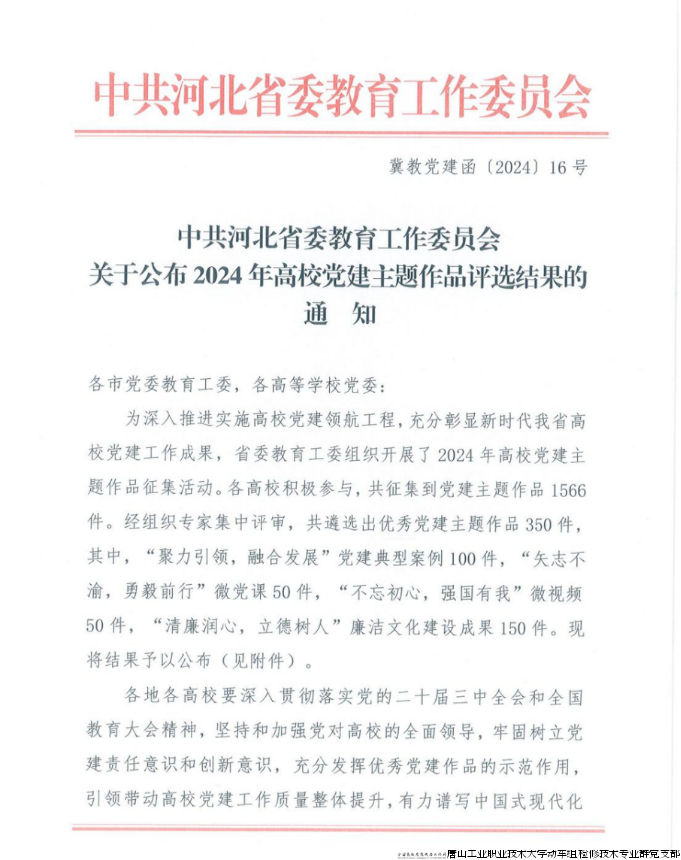 唐工大动车组检修技术专业群党支部党建主题案例荣获 2024年河北省高校党建主题作品评选二等奖