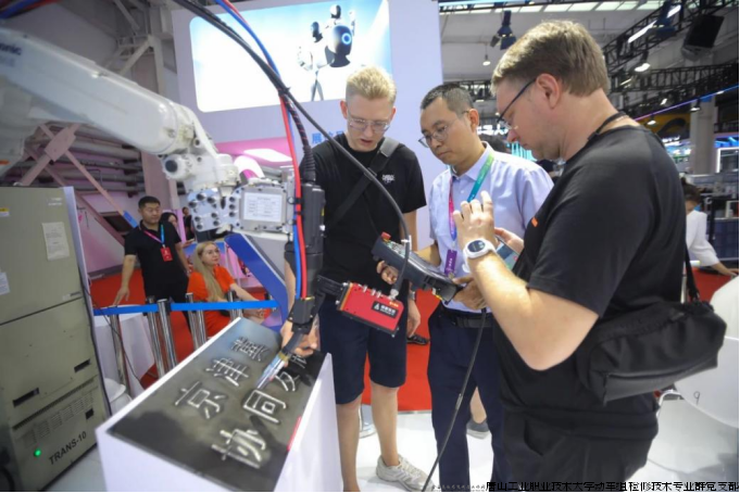 在京津冀协同发展实践中,唐山已经形成以特种机器人为特色的产业集群,培育出多个单项冠军产品。展区中的铝合金焊接机器人单元是唐山松下产业机器有限公司自主研发的铝合金焊接机器人产品,在北京奥运会国家体育场(鸟巢)、国家大剧院、首都机场、港珠澳大桥等国家重大工程项目建设中发挥重要作用。自2017年起学校焊接实训基地被授权为“松下机器人培训基地”,校企双方在产学研合作模式、焊接机器人工艺师培养等方面交流密切,至今已有百余名学生取得“焊接机器人工艺师”证书。