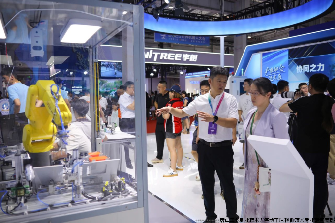2025世界机器人大会于8月8日在北京开幕,大会同期举办了机器人博览会。唐山工业职业技术大学作为河北职业教育唯一代表,受邀参会并承办“京津冀机器人产教融合协同发展”展览。