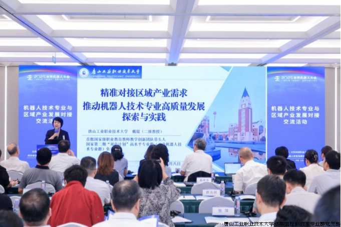 作为全球机器人领域的盛会,2025世界机器人大会于8月8日至12日在北京经济技术开发区北人亦创国际会展中心盛大启幕。作为大会的重要同期活动,由北京科技职业大学主办、机器人和智能制造产业学院承办的“机器人技术专业与区域产业发展对接交流活动”于8日下午在中关村(亦庄)国际机器人产业园举办。活动聚焦机器人技术专业建设、人才培养与产业需求对接等核心议题,特别邀请多位专家、行业学者共赴盛会,共议专业建设与产业协同路径,分享区域产业对接实践经验,旨在共同推动机器人技术专业与区域产业深度融合,助力地方经济高质量发展。唐山工业职业技术大学(以下简称“唐工大”)工业机器人技术专业群负责人戴琨教授应邀参加并作主题报告。