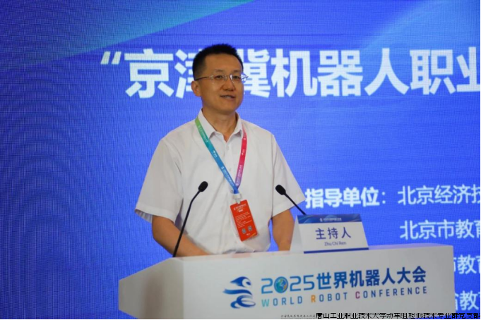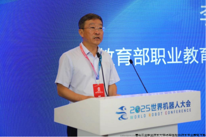 教育部职成司副司长李智在致辞强调,职业教育的发展定位就是培养高技能人才,在京津冀协同发展战略深入推进的背景下,机器人产业已经成为三地产业融合的纽带,北京的机器人创新资源优势,天津的本体配套优势,河北的应用场景优势,共同构成了覆盖研发、生产、应用全链条的产业生态;培养高技能人才的根本途径是产教融合,要推动企业深度参与到人才培养全过程,构建企业“出题”、学校“答题”、市场“验题”的产教融合模式;推进产教融合的主要抓手是“一体两翼”,“一体”“两翼”三者相互支撑,协同发力,共同推进职业教育改革;深化一体两翼建设,要把落脚点放在教学关键要素改革上,针对专业、课程、教材、师资、实习实训五大要素进行整体设计;开展教学关键要素改革的核心原则是坚持结果导向,聚焦学生对就业质量的满意度,企业对技能人才的满意度,职教对区域支撑的满意度。
