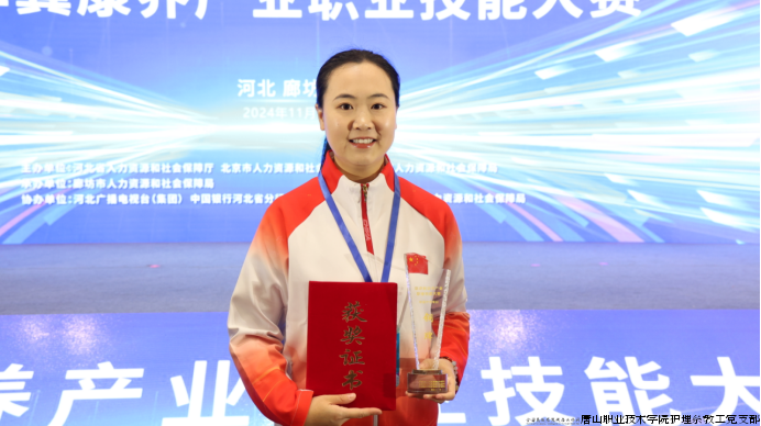 王维维老师凭借出色的专业技能和稳定的临场发挥,在医疗照护项目中荣获银牌。她凭借丰富的实践经验和深厚的专业功底,赢得了评委和观众的一致好评。王维维老师的获奖不仅是对她个人能力的肯定,更是对唐山职业技术学院护理系对教师综合能力培养的认可。