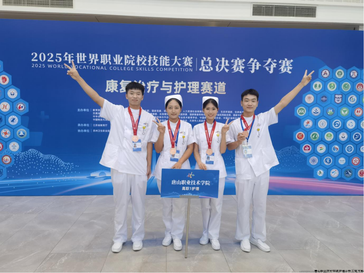 在第四批“全国党建工作样板支部”培育创建项目的强劲引领下,唐山职业技术学院护理系教工党支部始终锚定“育时代护理人”这一支部建设核心主题,以抓党建塑师魂为根本,持续深化党建与教育教学、竞赛培育的深度融合,用党建红点亮专业强发展之路,在育人征程上结出累累硕果。2025年8月26日至30日,2025年世界职业院校技能大赛争夺赛高职组康复治疗与护理赛道在苏州火热开赛,来自全国高职和职业技术大学的参赛队伍齐聚一堂,同台竞技、各展风采。我院护理系教工党支部主动扛起育人使命,由全部为党员的王维维、张富程两位教师领衔指导,带领护理专业23级学生柳子阳及24级学生董少博、黄银杏、邢佳莹——这支全员均为入党积极分子的参赛团队,凭借扎实的专业功底、娴熟的操作技能和稳定的赛场发挥,从众多强手之中脱颖而出,最终斩获铜奖。这一成绩,不仅是师生实力的彰显,更生动诠释了第四批“全国党建工作样板支部”培育创建项目下,党建赋能育人的显著实效,让党建引领高质量发展的力量深入人心。