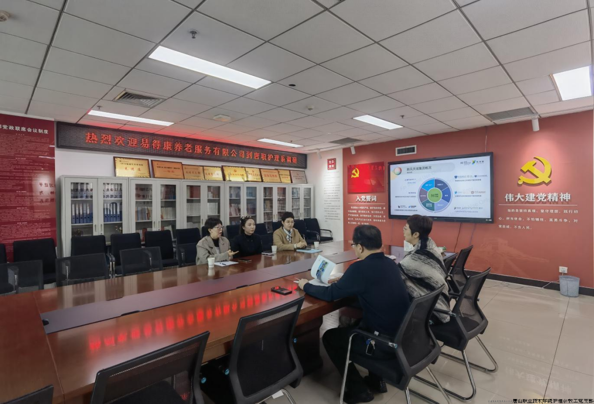 唐山职业技术学院护理系深耕长期照护人才培养领域,凭借扎实成果与示范引领作用,成功入选第四批 “全国党建工作样板支部” 培育创建序列,其专业实力与育人成效持续吸引行业关注。近日,易得康养老服务有限公司相关负责人专程赴学院护理系开展调研,围绕实习基地共建、就业渠道拓展、订单班联合培养、长期照护师职业技能等级证书培训考核等核心议题,与护理系团队深入交流,为双方后续深化校企协同、共推行业人才培养搭建合作桥梁。