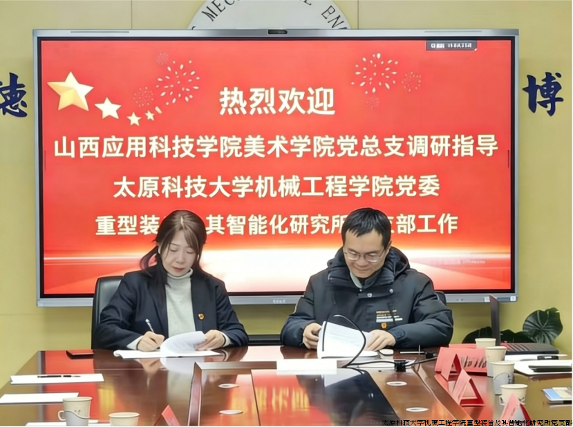 为深入学习贯彻党的二十届四中全会精神,推进新时代高校党建示范创建与质量创优工作,落实山西省高校党建工作规范提升专项行动和太原科技大学党委党建规范提升专项行动要求,机械工程学院党委积极探索跨学科、跨院校基层党建联建新模式,2025年12月18日,太原科技大学机械工程学院重装所党支部与山西应用科技学院美术学院第一党支部,在太原科技大学开展“学习二十届四中全会精神,共谋党建联建新发展”主题交流活动。
