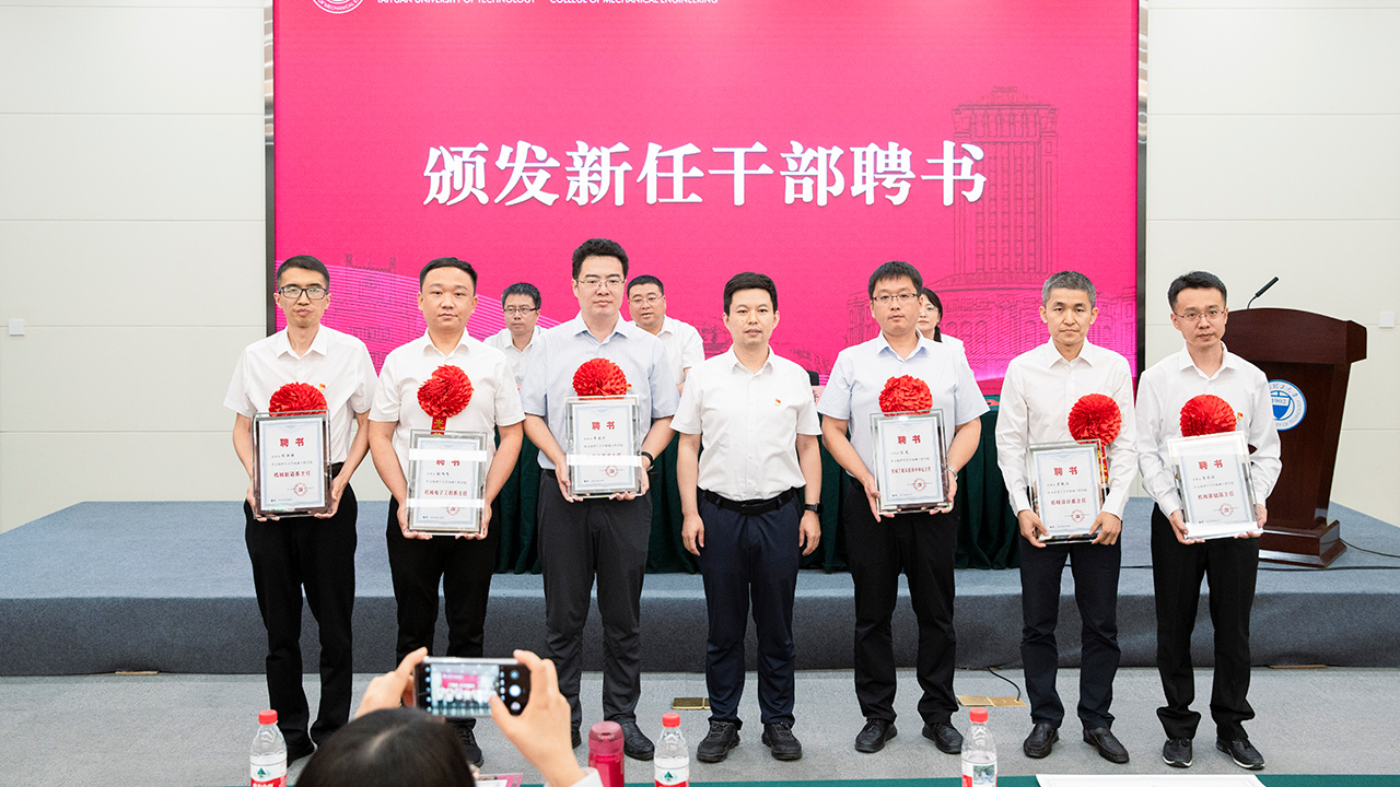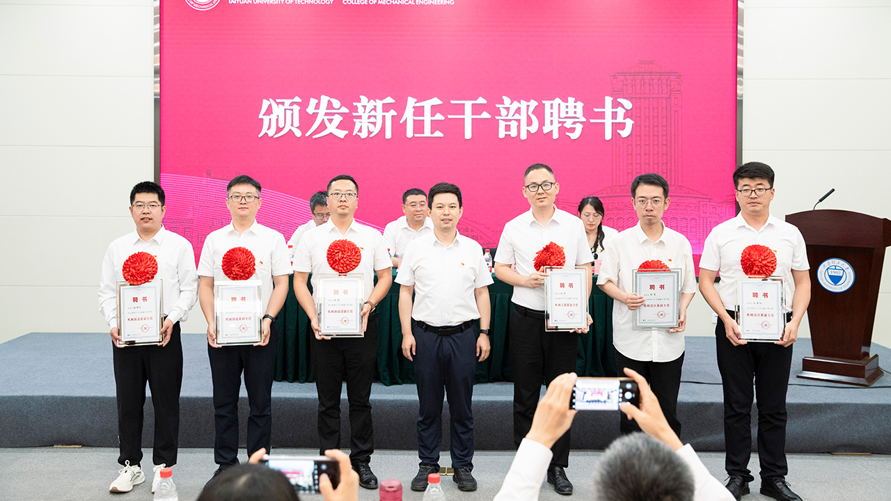 大会同时举行了新任干部聘任仪式,支部党员吕凯波担任机设系主任、郭策和陈泽仁同志担任机设系副主任,院领导为三位同志颁发新任干部聘书。