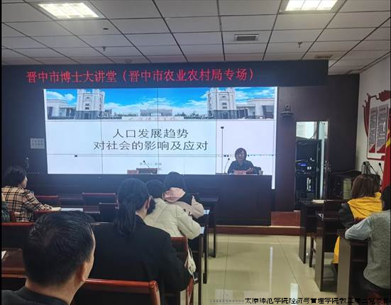 高丽博士前往晋中市农业局,为农业局信息中心的工作人员做了“山西省人口趋势对社会的影响及应对”的主题报告,分享了山西省尤其是晋中市人口变化对社会、对农村发展的影响及应对。