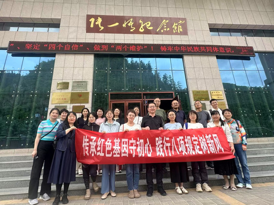2025年6月7日,外国语学院教工第一党支部党员在支部书记吕文澎老师带领下,赴榆中县参观张一悟纪念馆等爱国主义教育基地,开展“传承红色基因守初心,践行八项规定树新风”主题党日活动。学院领导陈兴杰、张宝林,党委委员赵卫博,王琦教授等应邀一同参加。