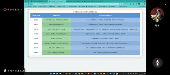吕老师认为,目前大模型技术高速迭代,DeepSeek是一款高性能、低成本、开源开放的人工智能大模型,具有强大的推理能力、数学逻辑和跨语言处理能力,因此,它在全球AI竞争格局中迅速崛起。今天,我们站在翻译技术革新的新起点,欣喜地迎来了DeepSeek赋能翻译的黄金时代!她通过自己与学生借助DeepSeek进行诗歌与书名翻译的实践与研究,发现它的确是外语与翻译教师的好帮手。吕老师同时提醒大家,我们作为DeepSeek用户,一定要不断提升自身综合素养,尤其是辨别能力与考证能力,这样才能让AI更好地为人类服务。
