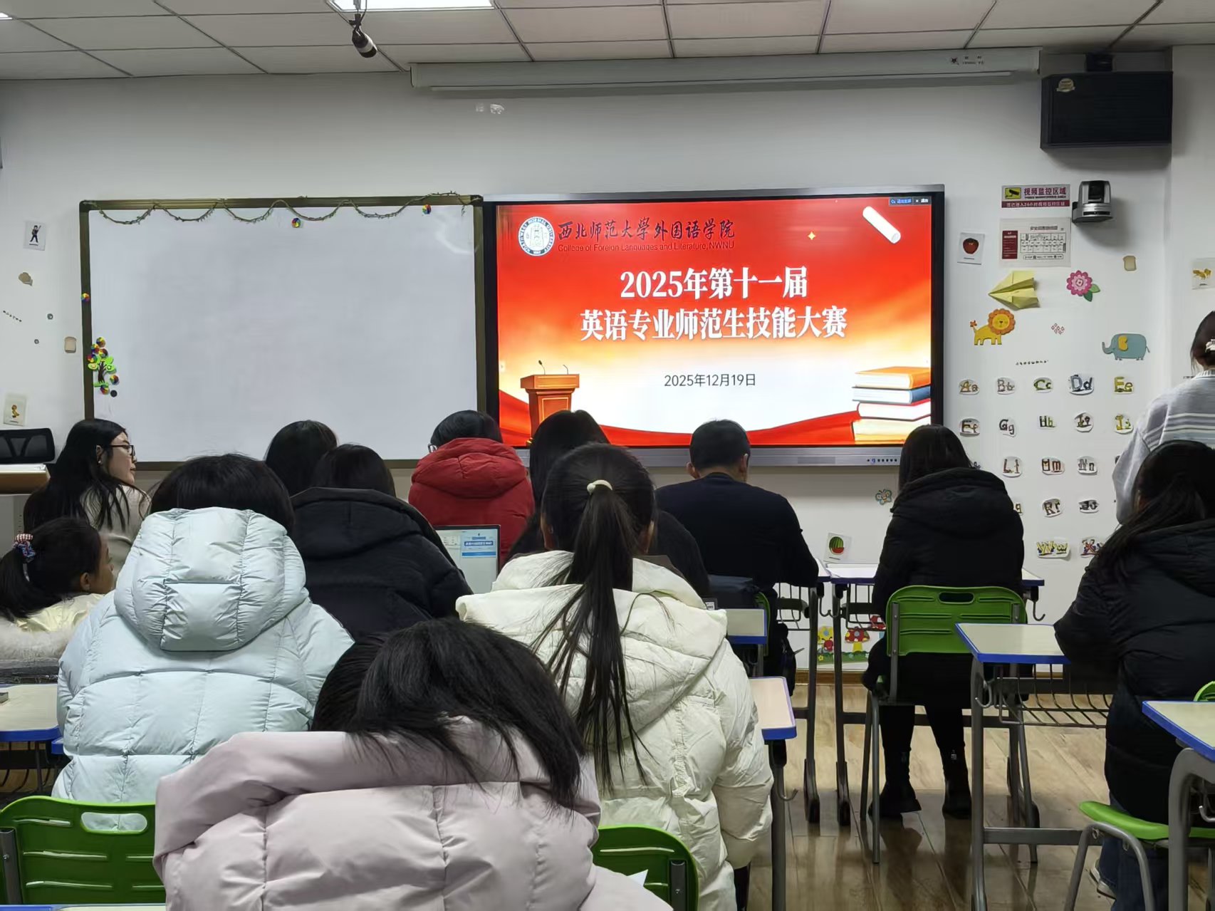 2025年12月19日,西北师范大学外国语学院第十一届英语专业师范生技能大赛在云亭校区成功举行。本次大赛以“教学展示”“教案展示”“课件展示”三大赛项为核心内容,旨在以赛促学、以赛促练,全面检验师范生的教学实践能力,夯实其从教素养,为未来职业生涯奠定扎实基础。