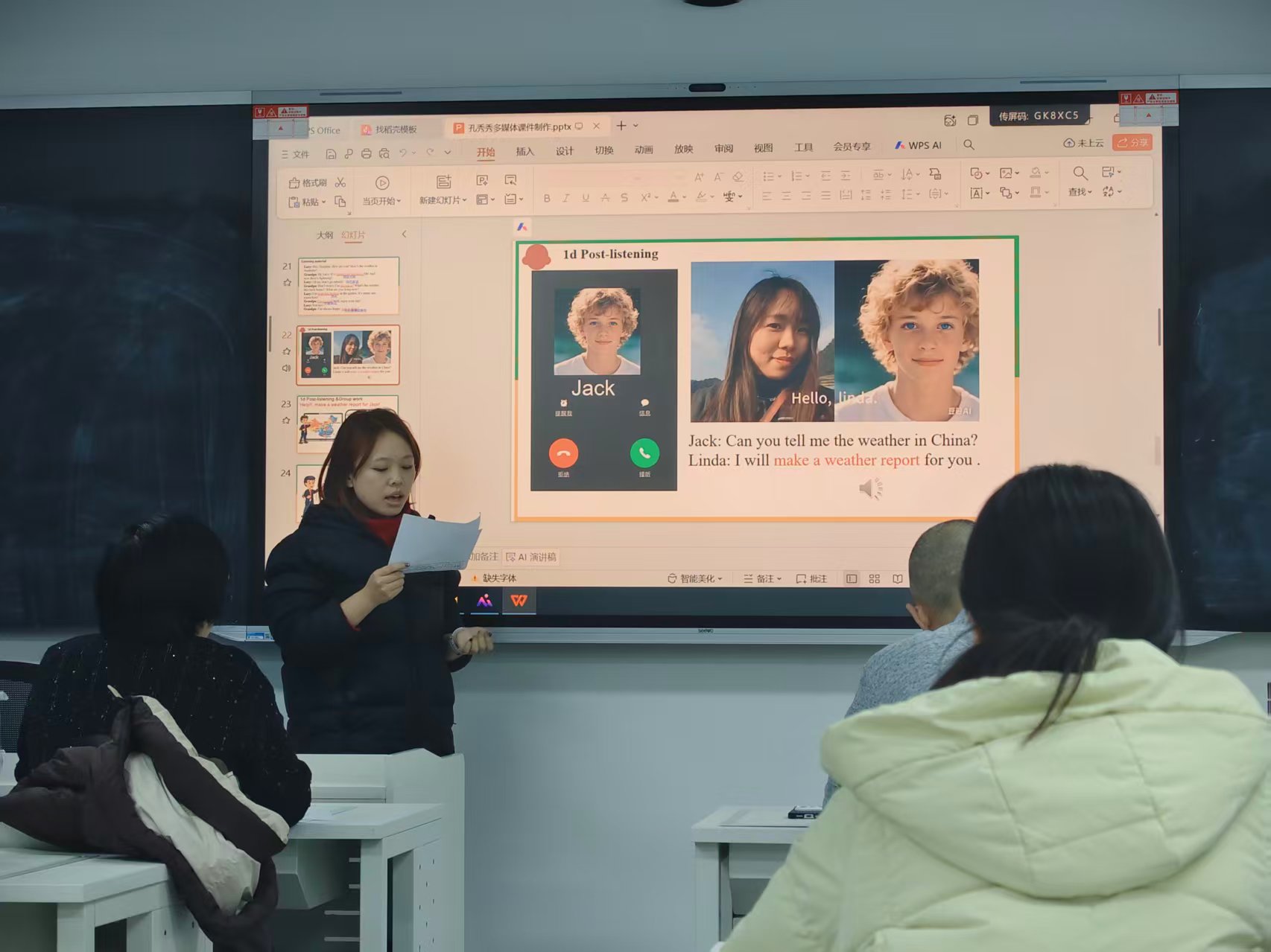 教案展示赛项在606教室举行,由张桂娟、穆永寿、杨阳、吴安红、史晓婷老师担任评委。评委老师从教案的设计逻辑、学情适切性、教学环节完整性等方面提出优化意见。参赛教案充分体现新课标理念,展现出对英语教学内容的系统梳理与教学设计的深入思考。最终,赵亮娜、李智智、向敏媗、李若涵、程双鑫、何佳临六位同学获得一等奖,其余同学表现同样出色。
