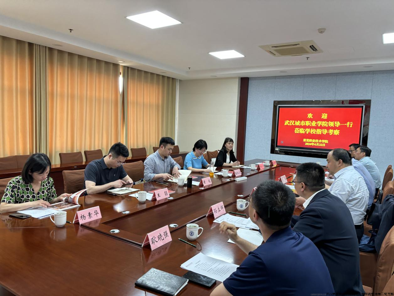 刘铖对黄毅一行到访表示欢迎,并从办学历史、专业设置、校企合作、招生规模、科学研究、党建与业务融合、党建引领赋能乡村振兴等方面全面介绍该校基本情况,重点介绍党建引领学校事业发展提速方面的经验做法。他表示,武汉城市职业学院办学历史悠久、教育特色鲜明,希望两校以此为契机,进一步深化交流、增进友谊,开展更多领域、更深层次、更高质量的合作。