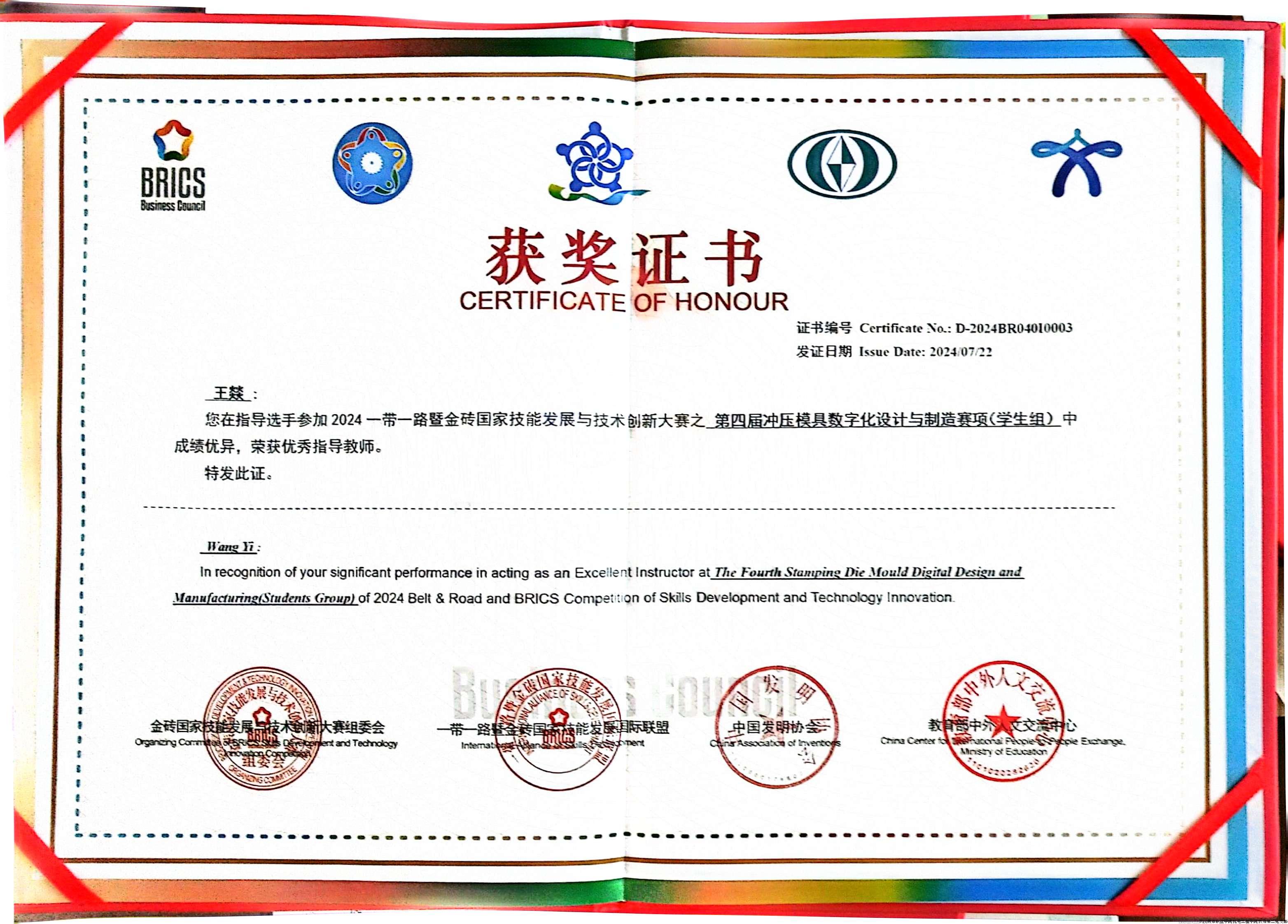 图7 王燚优秀指导教师