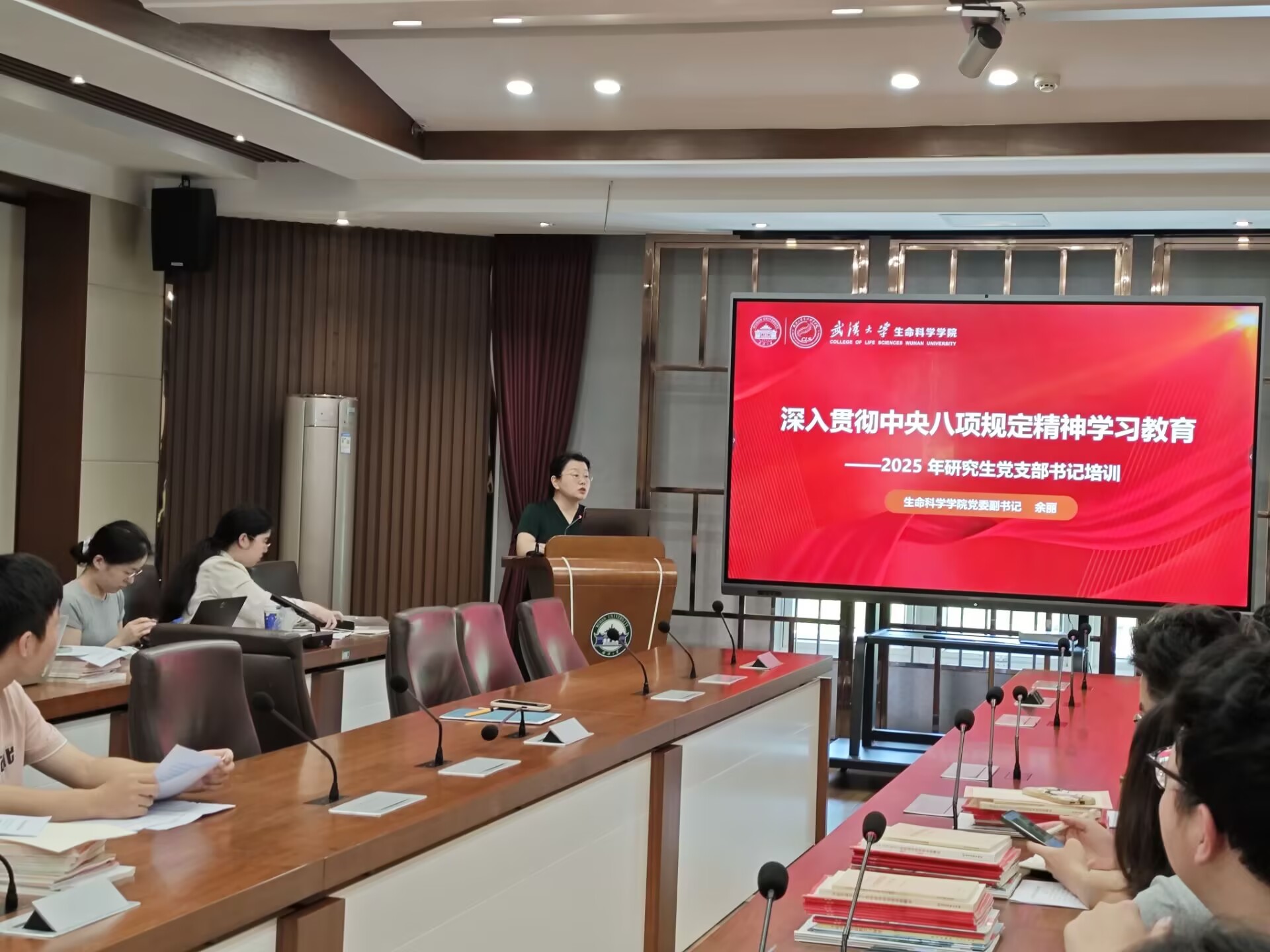 武汉大学生命科学学院党委副书记余丽为研究生党员骨干讲授中央八项规定精神专题党课