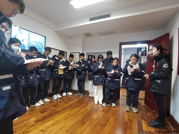 最后,同学们在讲解员的带领下走进周恩来旧居,通过观看一件件革命文物、聆听一段段历史往事,了解周恩来在武汉大学珞珈山居住期间的事迹,并将周恩来动员广大青年学子抗战救国的事迹认真记录在本中,铭记在心中。