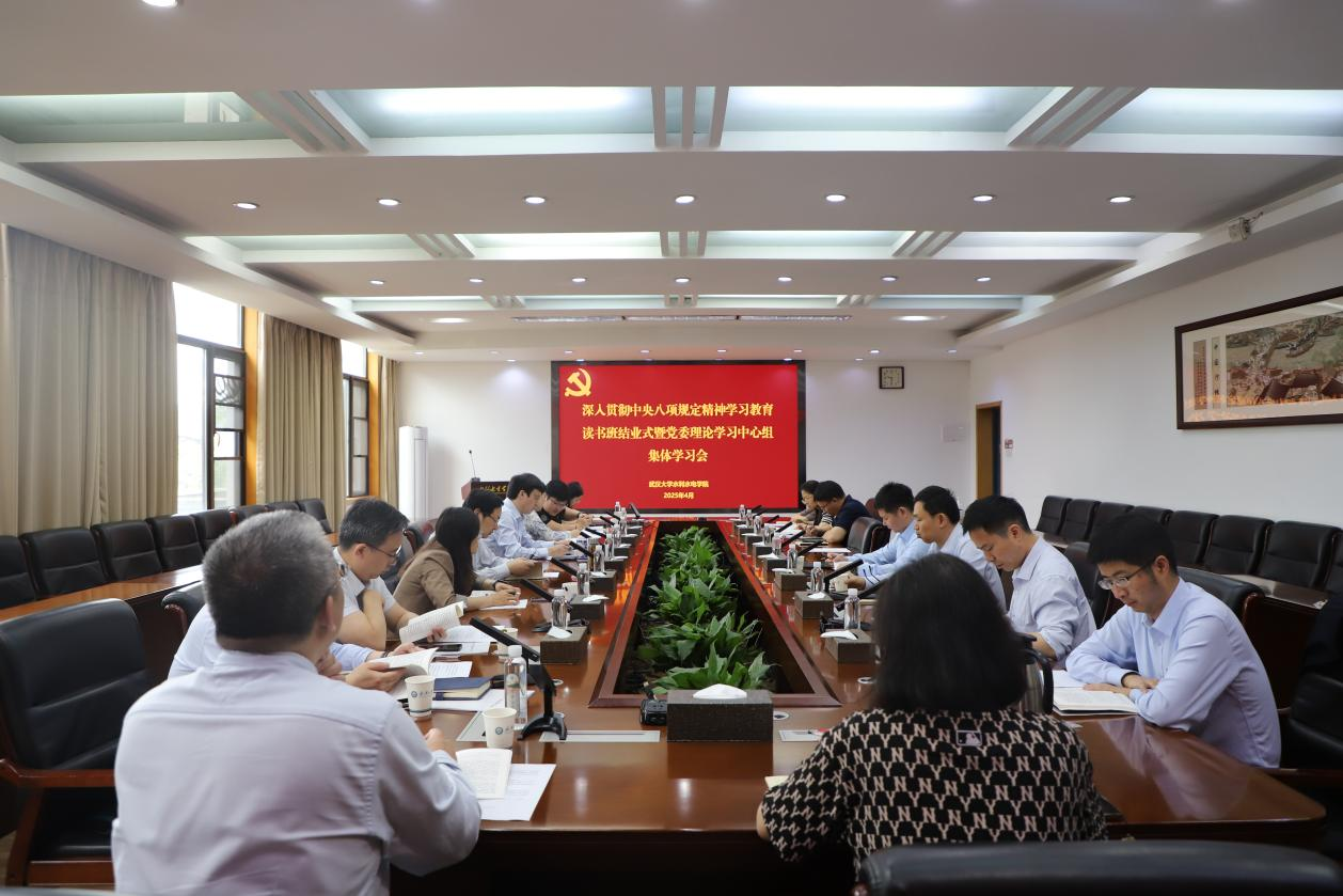 读书班期间,院领导班子成员坚持以上率下,带头原原本本学习《习近平关于加强党的作风建设论述摘编》、中央八项规定及其实施细则精神等;集体观看中央八项规定精神专题片《铁规矩硬杠杠》,深刻认识到作风建设是党的生命线,必须始终以铁的纪律筑牢思想防线;赴武汉大学周恩来故居开展参观见学,从老一辈革命家的崇高风范中汲取精神力量;邀请马克思主义学院李斌雄教授作题为《新时代新征程加强党的作风建设的新形势、新思路、新任务》的辅导报告,为推进作风建设提供了重要理论支撑和实践启示。深入开展党委理论学习中心组专题学习,结合如何以优良作风推动学院事业发展开展研讨交流,进一步筑牢以作风建设新成效推动高质量发展的思想根基。