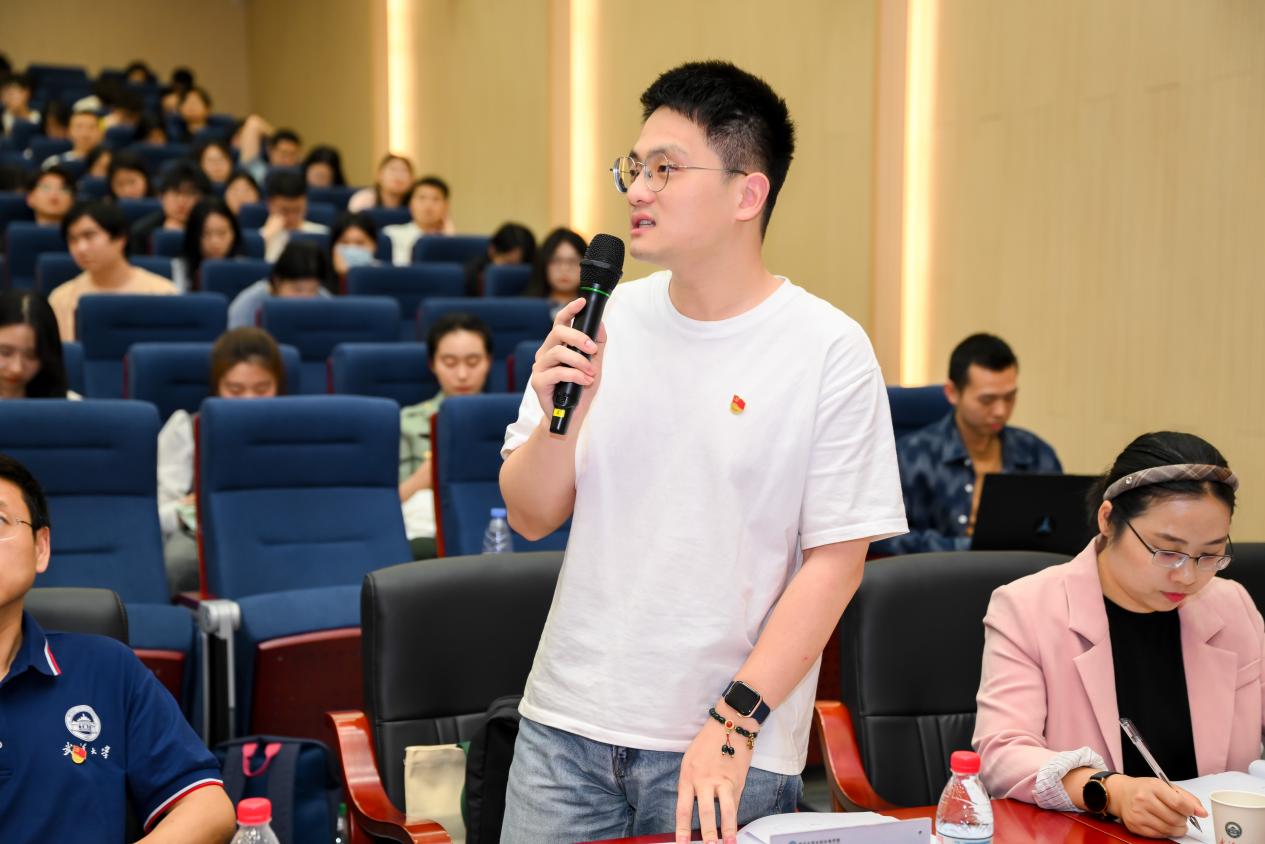 在讨论结束后,政治与公共管理学院国际关系系副教授刘天阳、马克思主义学院中共党史党建系教师毕鸿昌两位老师从专业角度分别进行了点评。刘天阳老师结合中美“关税战”这一热点话题,引导同学们培养全球视野,在复杂多变的国际环境中坚定理想信念;毕鸿昌老师从马克思主义理论和党史党建角度出发,围绕党性修养、理论学习以及学生党员的先锋模范作用发挥等方面进行了深入阐释。两位老师的点评鞭辟入里又贴合实际,让参会的学生党员们获益匪浅。
