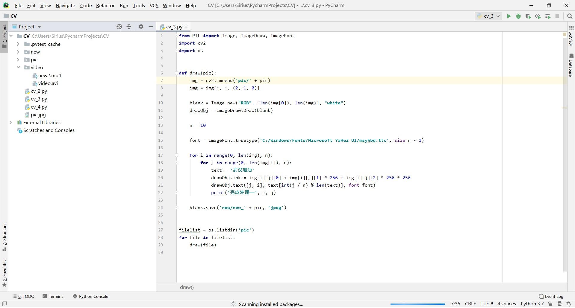 据悉,朱永春同学曾在武汉大学官方微博担任编辑,去年在参加由武汉大学官方微博策划开展的“樱花开放季-用专业向樱花表白”活动中,他就曾用Python创作出了“用代码画樱花树”,反响良好。当前疫情防控期间,正逢樱花盛开,他就又用代码创作出了这项通过描绘樱花绽放来为武汉加油的视频作品。“整个过程花了三四个小时,构思是以去年武汉大学官方微博发布的樱花初绽视频作为源视频,逐帧提取像素信息之后,再赋给由‘武汉加油’组成的新图片,而后重新拼接。”谈起这次创作,他如是说到。