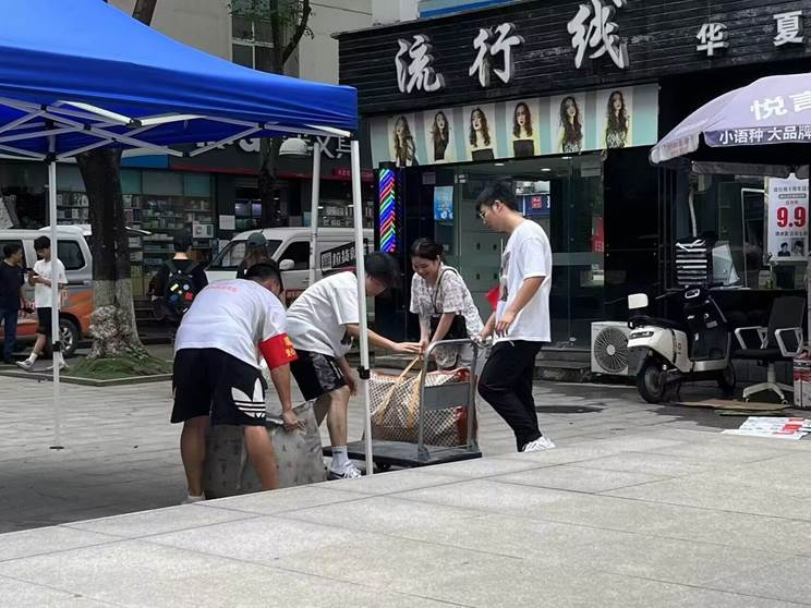 我院瑞雪爱心服务队的同学们帮助毕业生学长学姐们整理宿舍,运送行李,他们拎起毕业生的行囊,送别学长学姐们。