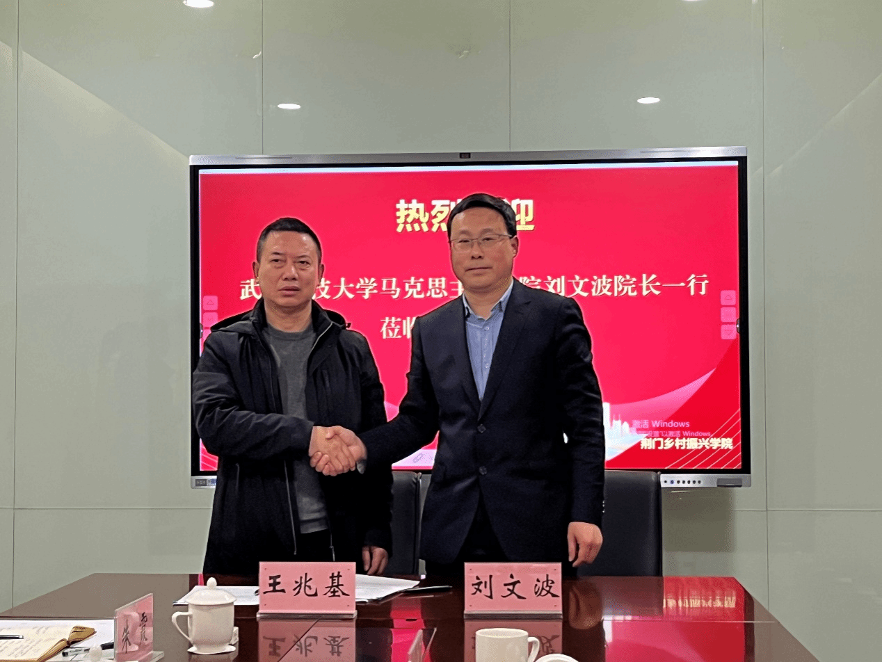 座谈会上,王俊热烈欢迎刘文波院长一行到荆门交流考察,表示省市两级政府高度重视乡村振兴人才培养工作,期待武汉科技大学为推动荆门市乡村全面振兴贡献才智。王兆基从历史沿革、培训规模、机构设置、课程体系、对外合作等方面对荆门乡村振兴学院进行了介绍。刘文波重点介绍了我校马院的学科、专业、师资和办学特色及我校乡村振兴研究院的资源优势,期待以此次交流考察为契机,在人才培养、科学研究、社会服务等方面建立更加紧密的合作关系。张荆红希望荆门市委党校和荆门乡村振兴学院在实习实践方面给予马院研究生更多支持,进一步拓展就业渠道。双方围绕教学科研、决策咨询、实习实训、技能培训等内容进行了深入交流,并就荆门乡村振兴学院与武汉科技大学乡村振兴研究院的战略合作达成了初步共识。期间,刘文波与王兆基分别代表武汉科技大学、荆门乡村振兴学院签署了《武汉科技大学与荆门乡村振兴学院共建研究生实习实践基地协议》。