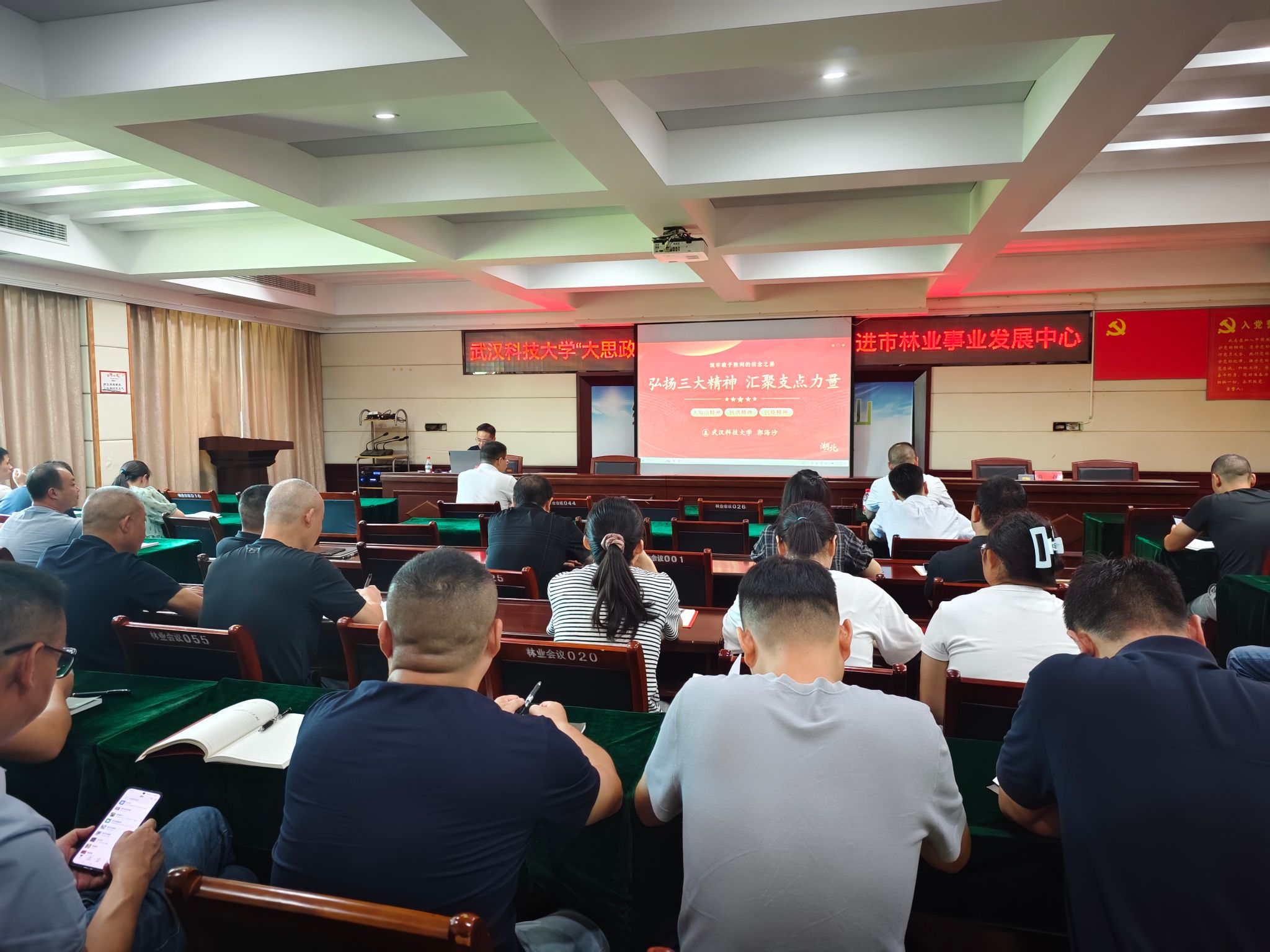 在市林业事业发展中心,马克思主义学院党委副书记、副院长郭海沙以《弘扬三大精神 汇聚支点力量》为题,从“三大精神”的科学内涵及其历史贡献、思想文化资源和基因特质、共同特质及其时代价值等方面深入诠释“三大精神”在支点建设中提供的强大精神力量。郭海沙表示,“三大精神”跨越时空、历久弥新,蕴含的信念力量、价值立场和精神伟力,对湖北在长江经济带高质量发展中奋勇争先具有重要意义,要将三大精神力量转化为推动经济社会发展的实际行动,为湖北加快建成中部地区崛起的重要战略支点贡献仙桃力量。与会人员纷纷表示,通过学习进一步领会了三大精神的深刻内涵和时代价值,增强了投身湖北高质量发展的信心和决心,将以更加饱满的热情和昂扬的斗志,共同书写仙桃高质量发展的新答卷。