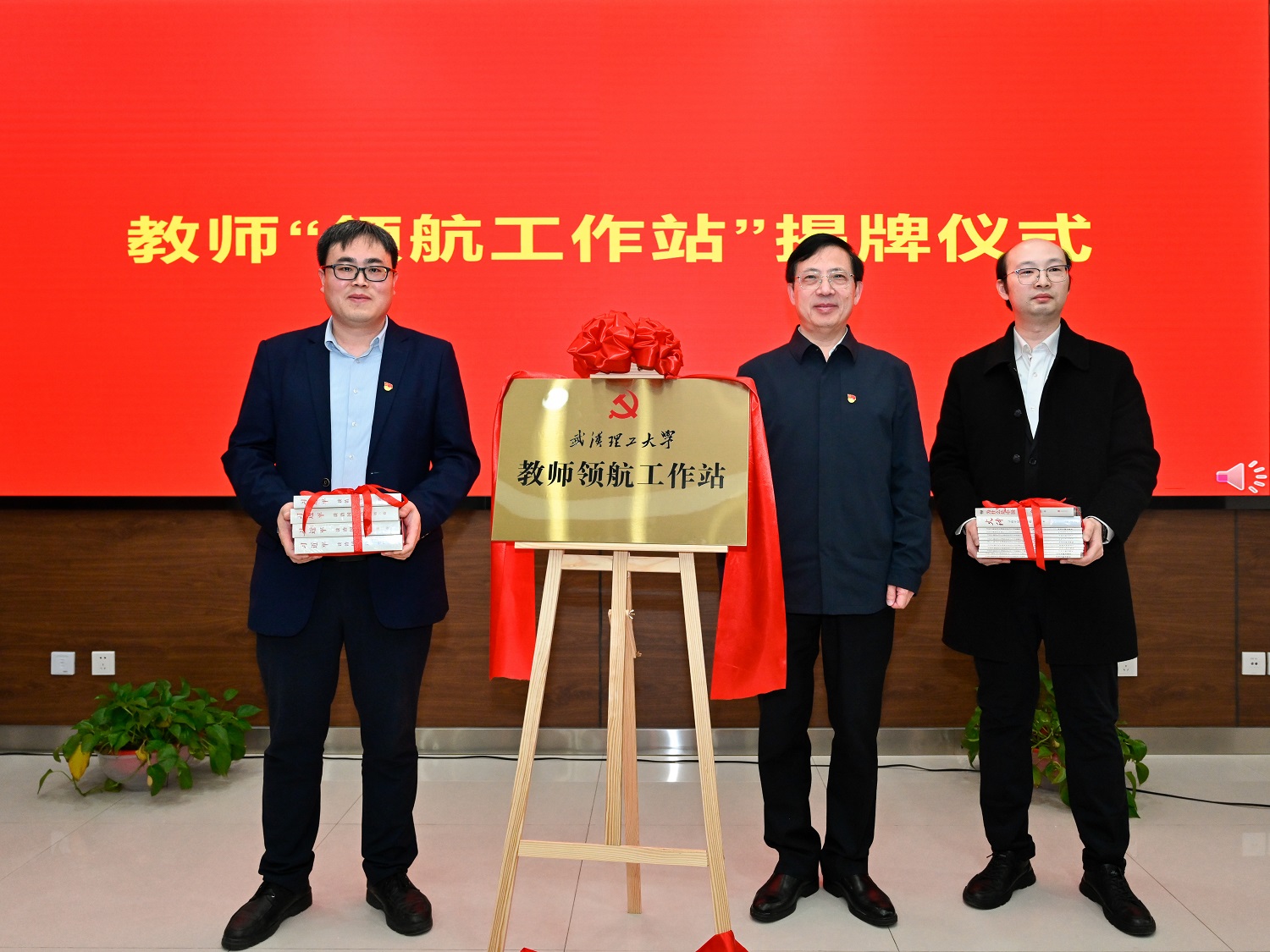 信思金为学校教师“领航工作站”揭牌并赠书。他指出,教师领航工作站是学校党委落实“党管人才”原则的创新抓手,是推动教师队伍政治素质与业务能力“双提升”的关键路径,必须以高度的政治自觉,将工作站建设作为弘扬教育家精神、建设高素质专业化教师队伍的具体行动。结合试点建设任务,他提出三点要求:要提高政治站位,深刻把握建设“领航工作站”的时代意义,筑牢“为党育人”政治根基;要锚定核心任务,系统构建“领航工作站”四维体系,打造教师发展“理工范式”;要压实主体责任,健全“三级联动”责任体系,强化“全校一盘棋”执行效能。