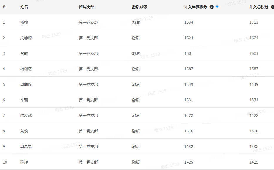 十月份,一支部活跃学员23人,学习强国月平均参与率97%,学员月最高得分1634分,整体学习态势良好,人均积分较上月持平。十月积分排前十名党员分别是:杨戟、文峥嵘、曾敏、杨树清、周闻峥、李莉、陈爱武、黄慎、郭晶晶、陈璟。现对以上同志进行通报表扬,希望其他党员同志向学习积极分子看齐,努力学习,力争上游,自觉养成良好的学习习惯,形成“比、学、赶、帮、超”的良好氛围。希望全体党员进一步提高政治站位,提高对习近平新时代中国特色社会主义思想重要性的认识,把平台作为日常学习互相交流的重要途径,经常学习、深入学习、联系实际学习,入脑入心,做到学有所获,学有所悟,学以致用,自觉强化理论武装头脑,自觉增强“四个意识”,坚定“四个自信”,做到“两个维护”。