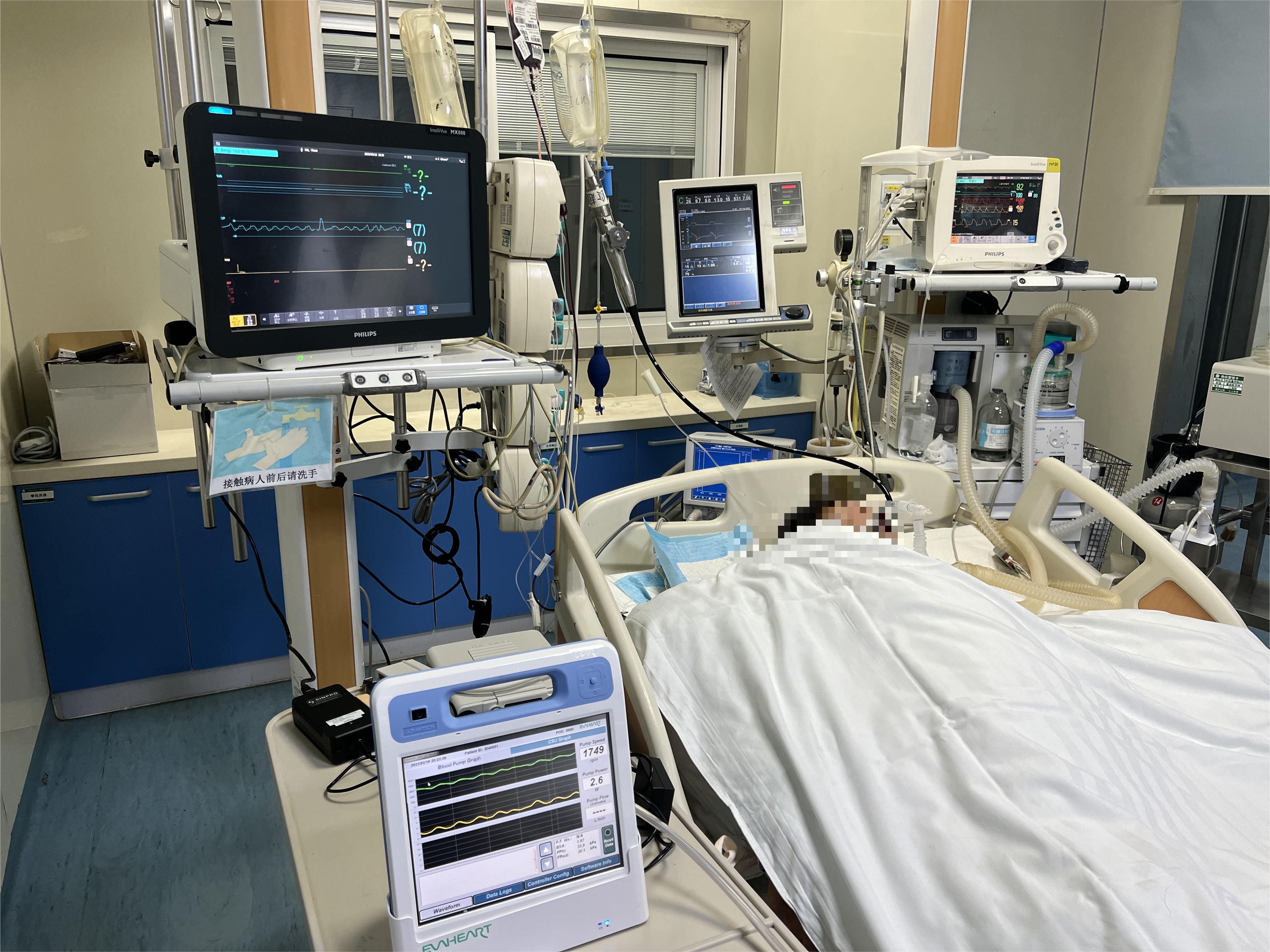 ECMO党员突击队积极组织安徽省第一例人工心脏植入手术术前的研讨工作,确保术后的安全工作顺利进行,积极制定应急方案,将患者院内转运的细节和预案进行反复演练和商讨。术中,积极配合患者进行人工心安置。患者术后由ECMO转运团队安全转运至我科进一步救治,患者生命体征平稳,机体恢复良好。