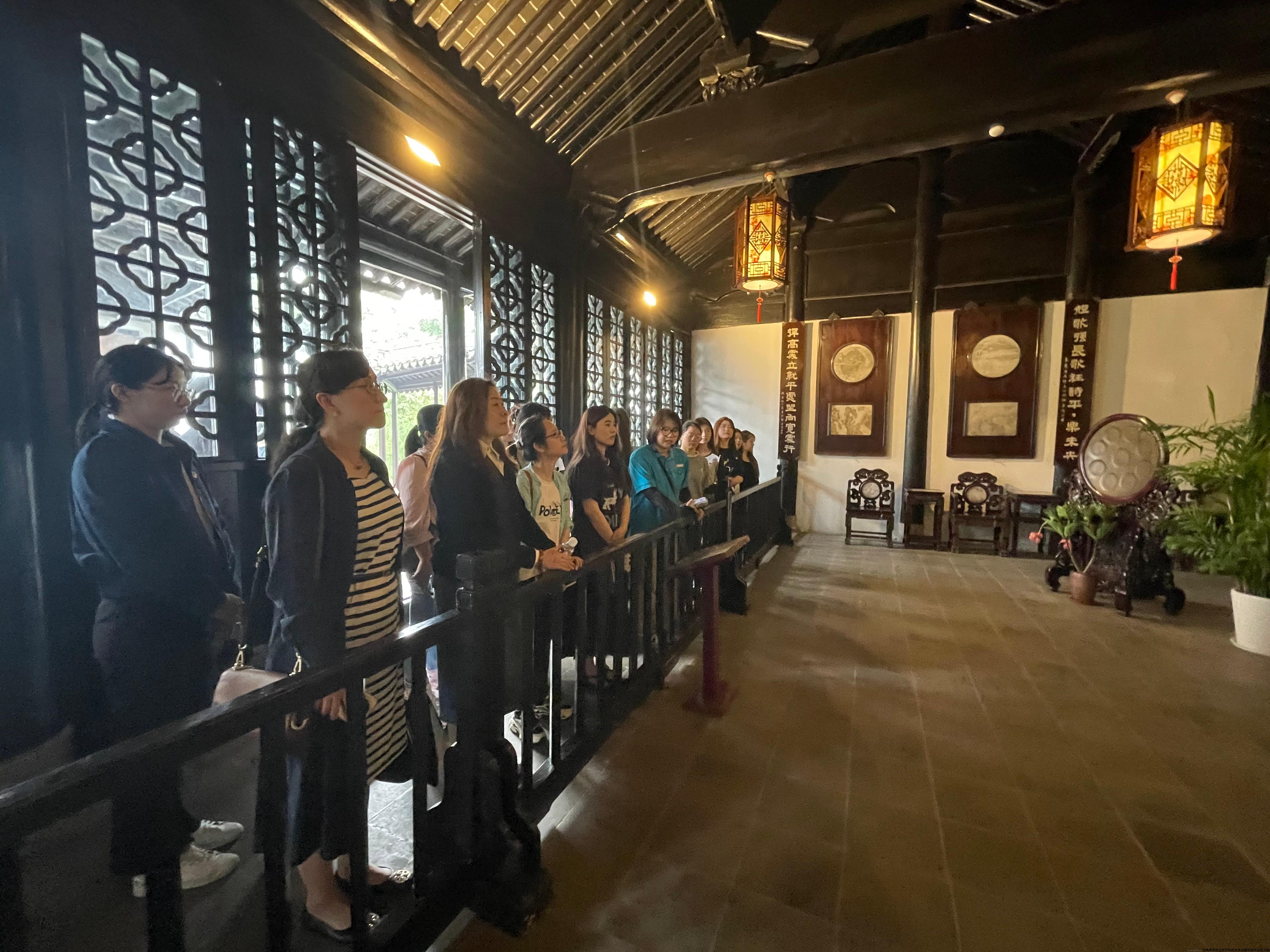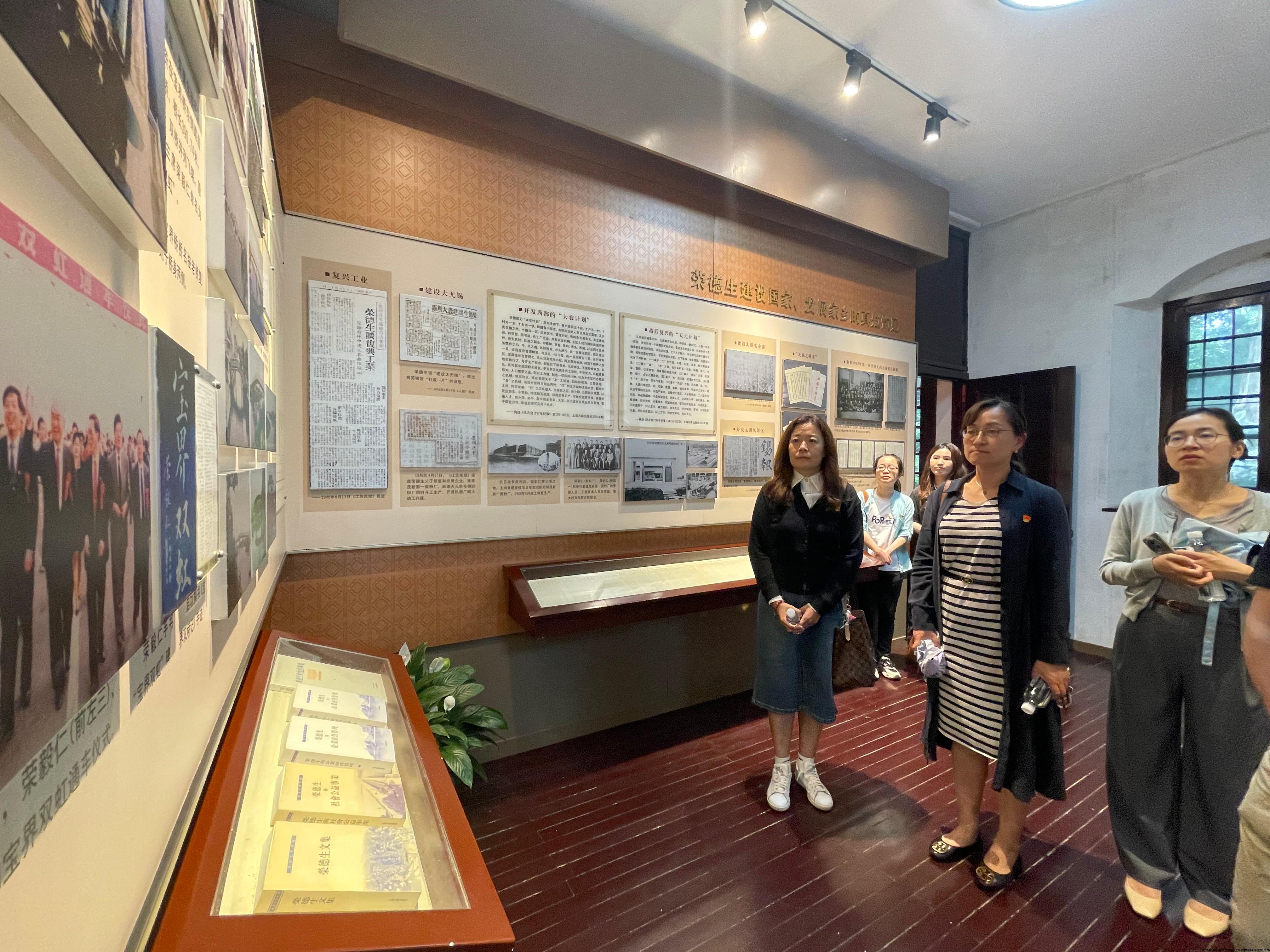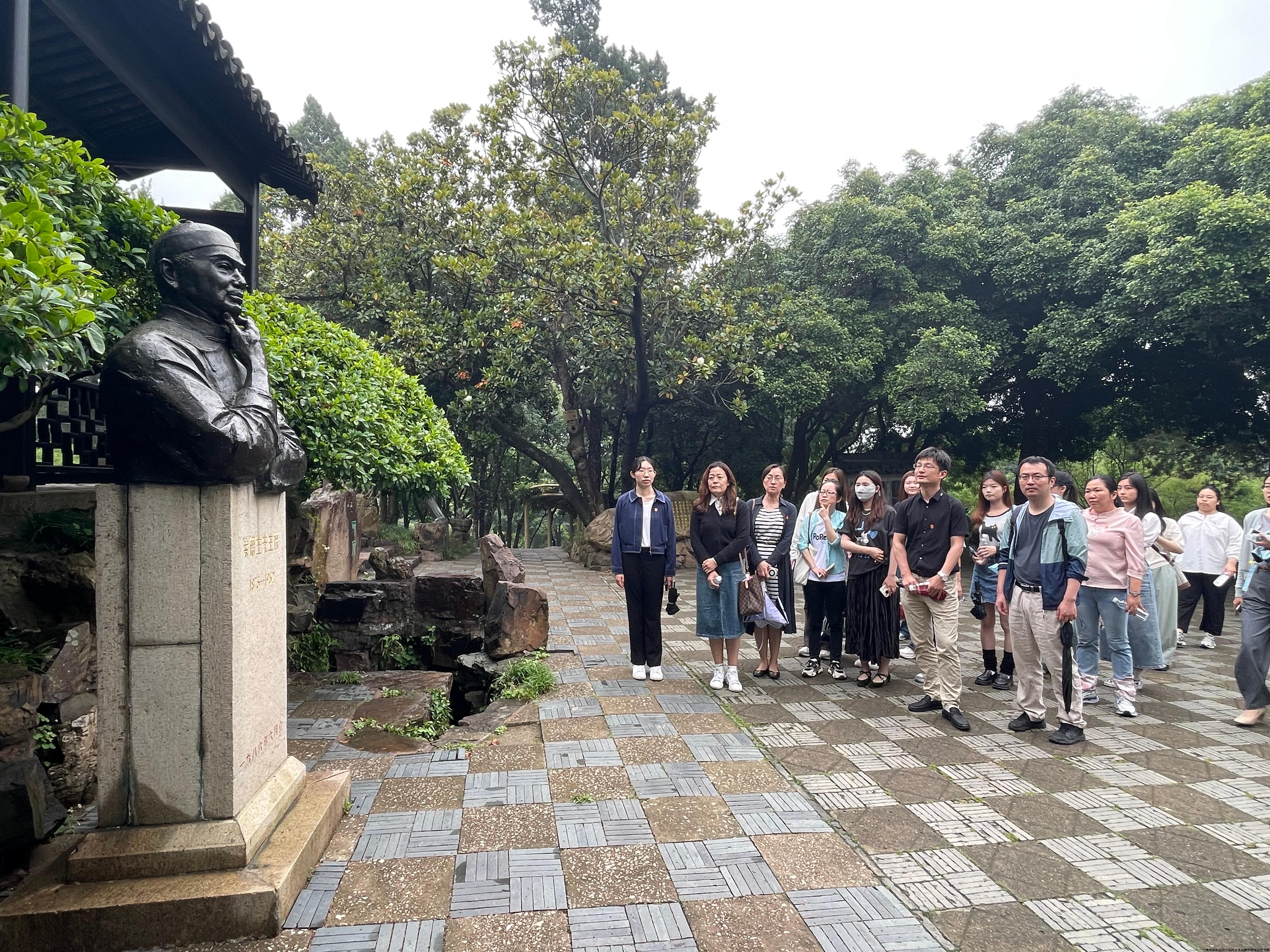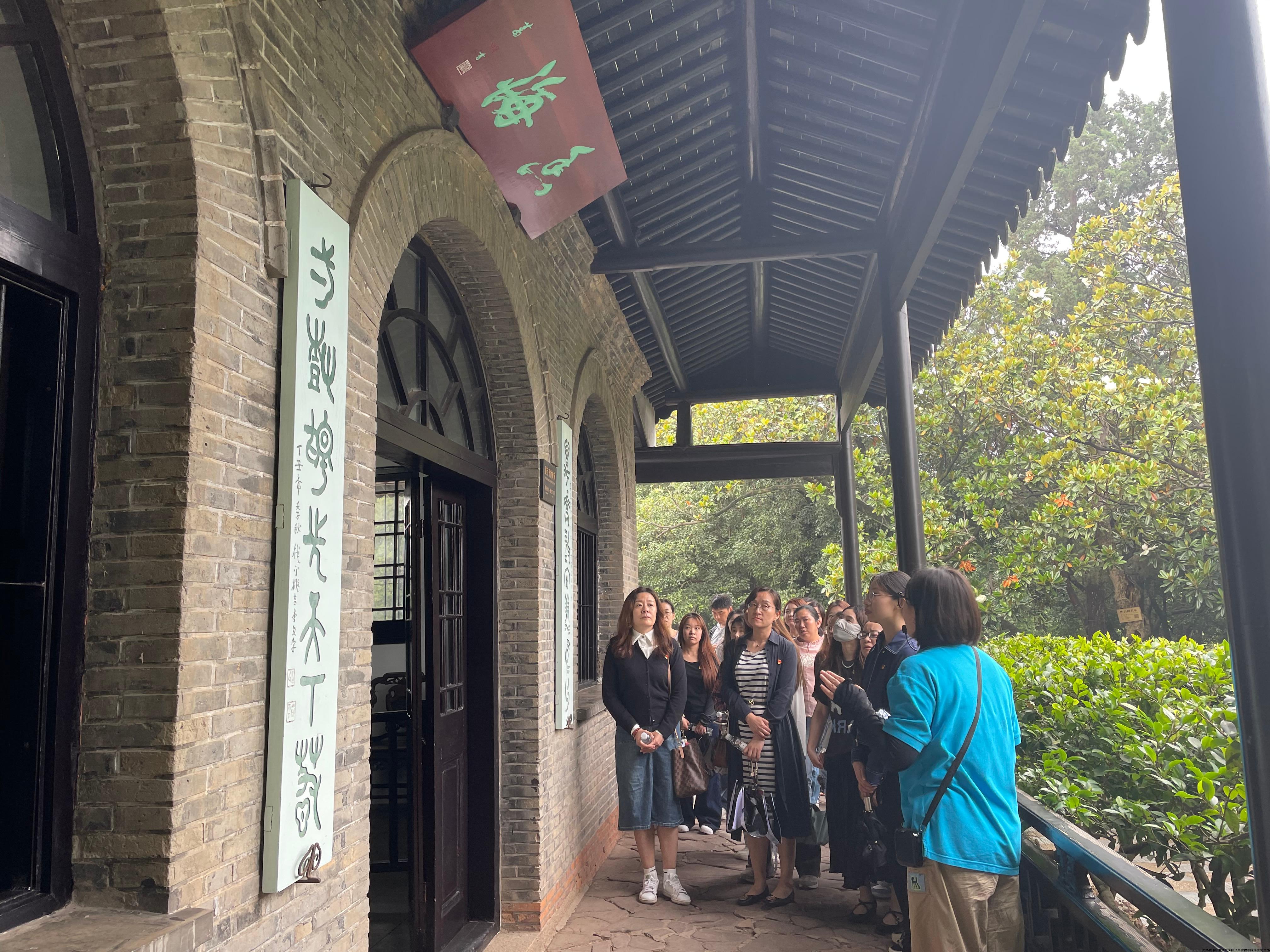 走进百年梅园,清廉底蕴尽显。师生党员、发展对象在讲解员的带领下,沿着“梅开五福·廉聚五心”廉洁文化教育专线,寻着初心、清心、恒心、丹心、诚心“五心”印记,先后参观了洗心泉、天心台、诵豳堂、乐农别墅、念劬塔、经畬堂等重要教育点,依次聆听荣氏家族传承廉洁家风、立志实业报国的生动故事。在参观现场,党员、发展对象们认真诵读荣毅仁先生撰写的《洗心泉记》,牢记“清白做人、干净做事”的高尚品格;聚精凝视天心台上的三星石,感悟“言行一致、表里如一”的谆谆教诲;用心观摩诵豳堂里的匾额楹联,学习“艰苦朴素、勤俭节约”的传统美德;仔细阅览乐农别墅中荣氏家族实业救国的图片资料和历史文物,追寻“淡泊名利、甘于奉献”的家国情怀;抬头仰望梅园标志性建筑念劬塔,体会“孝以养德,廉以修身”的荣氏家风;倾心驻足经畬堂读书处,铭记“心正思无邪、意诚言必中”的人生哲理。师生党员、发展对象们在观赏品读中接受“梅开五福”的廉洁教育,在百年清风中感受“廉聚五心”的身心洗礼。