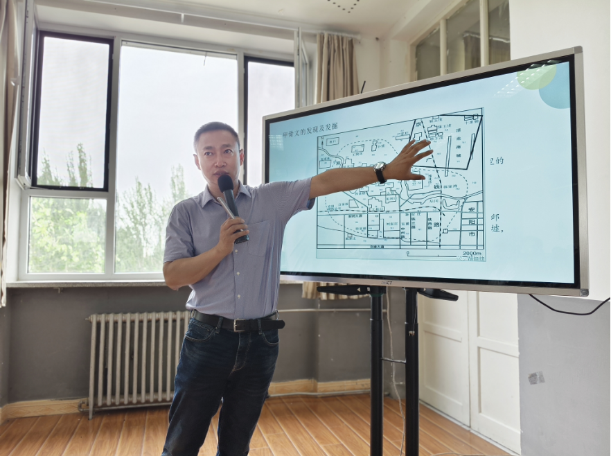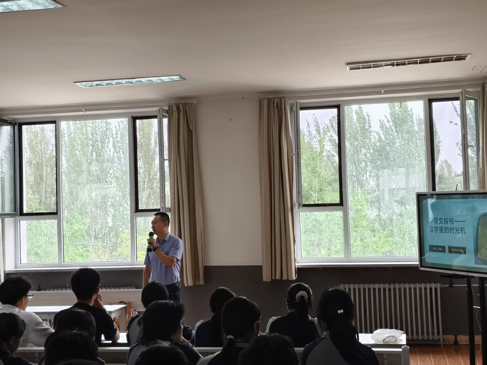 为积极推进“第三批高校‘双带头人’教师党支部书记工作室”及“全国高校‘双带头’教师党支部书记强国行专项行动团队”建设,2025年6月24日下午,文学院中文系教工党支部党员杨敏应开元学校邀请,为该校师生作了题为“甲骨文探秘——汉字里的时光机”的讲座,内容涵盖“甲骨文的定义与重要地位”“甲骨文的惊世发现”“甲骨文丰富的内容”“甲骨文的独特造字智慧”以及“甲骨文的传承与保护现状”,通过图文并茂的方式,生动普及了甲骨文的相关知识。