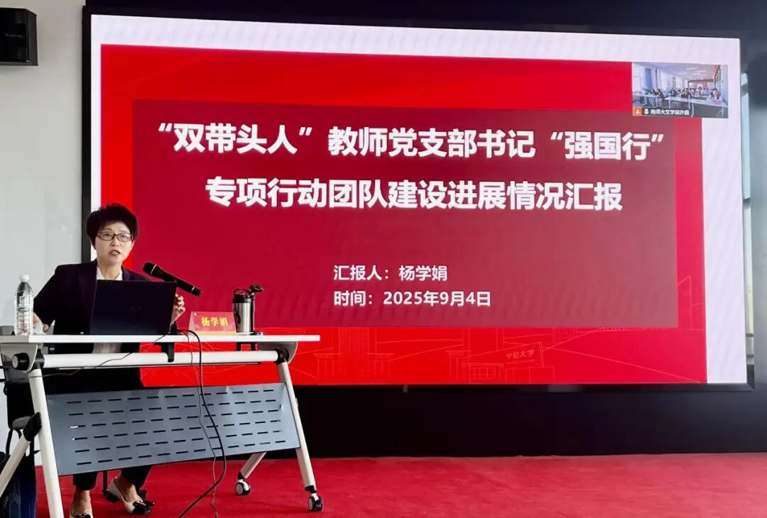 2025年9月24日,在自治区教育工委举办的全区高校“双带头人”教师党支部书记“强国行”专题培训班上,中文系教工党支部杨学娟教授与南京师范大学地理科学学院自然地理教工党支部书记陈仕涛共同主持“高校教师党支部工作探索与实践经验分享”论坛。
