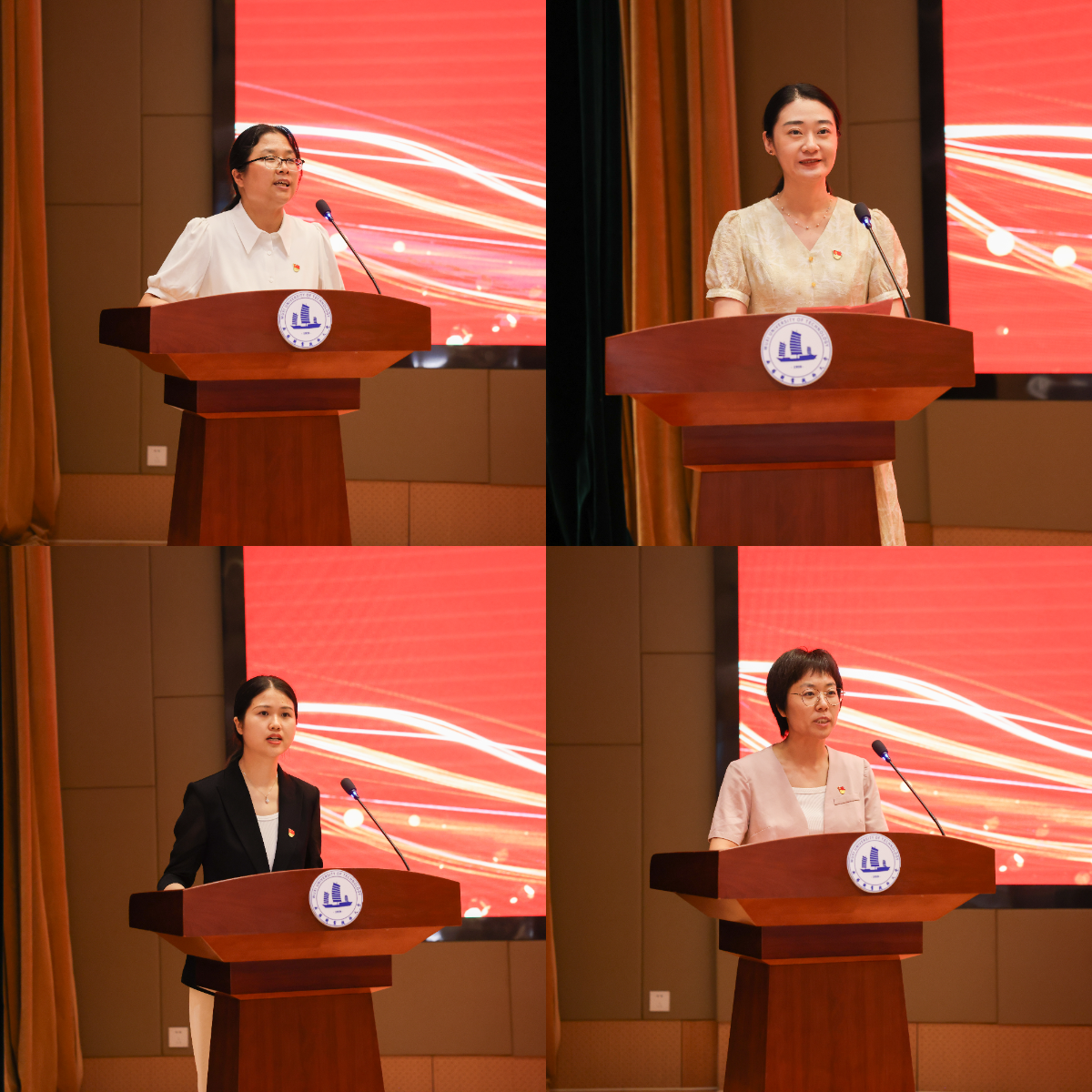 机械工程学院教师第一党支部书记苗盈、控制工程学院团总支书记祁曼、财经学院会计22323班班主任徐静文、设计艺术学院学工办主任林佳燕分别作为党务工作者代表、优秀辅导员代表、优秀班主任代表、思政工作精品项目代表发言。