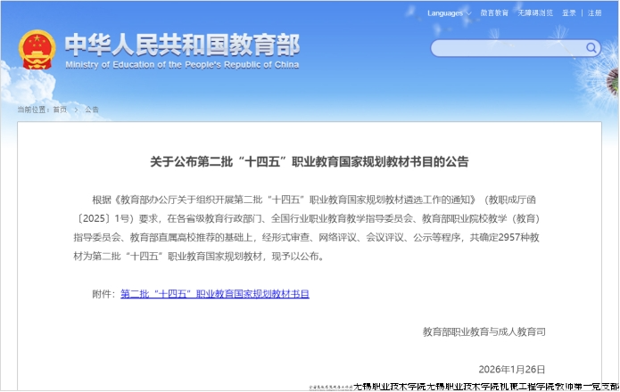 此次入选不仅是对编写团队专业能力与教研水平的肯定,更体现了党支部在教材建设领域坚持质量导向、深耕产教融合的发展理念。下一步,党支部将继续加大教材建设力度,发挥国家级规划教材的示范引领作用,深入推进“三教”改革,为区域经济社会与行业发展输送更多高素质技术技能人才。