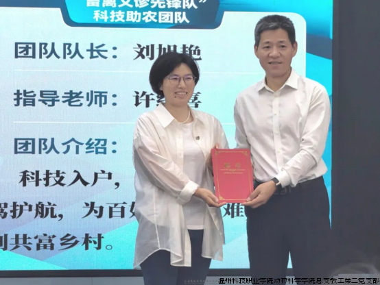 在聘任环节,陈旭辉副书记为姜斌、许红喜等5位专业教师颁发导师聘书。导师们将凭借自己深厚的专业知识和丰富的实践经验,成为志愿服务团队的“智囊团”和“引路人”,带领学生深入田间地头、社区基层,在动物疫病防治、养殖技术推广等实践中开展科技助农服务。
