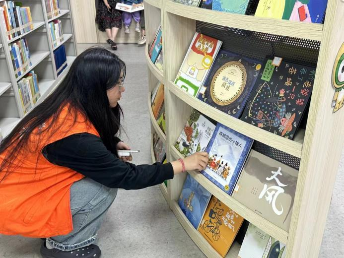 在一楼综合服务大厅,志愿者们掌握了工作要领后,积极热心地帮助办理借书业务的人员,同时帮助归纳整理低幼少儿书目。二楼工作的志愿者各尽其责,负责接待、引导借还图书的市民以及维持阅览室的秩序等。三楼负责运输整理图书的志愿者们也不乏忙碌的身影,他们穿梭于一排排书架中,整理并调整书架上的书册等。