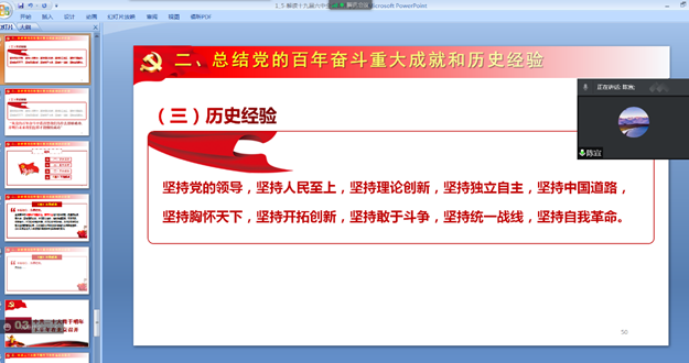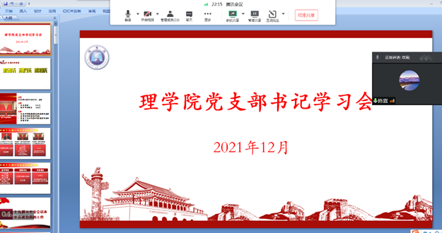 2021年12月17日中午,理学院通过线上召开支部书记会再次集中学习党的十九届六中全会精神,院党委书记陈宣主持学习。
