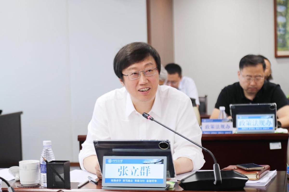 张立群部署暑期重点任务。他表示,2025年上半年学校各项工作取得显著成效,党的建设全面加强,人才培养质量持续提升,人才队伍建设成效显著,科研创新实现突破,基础研究取得重要进展,产教融合深入推进,对外开放步伐加快。当前,学校正处在高质量发展的关键阶段,各单位需以高度的责任感和使命感,将暑期重点工作置于重要位置,系统谋划、协同推进教育教学提质、科学研究突破、人才队伍建设等核心任务,进一步细化责任清单、强化分工协作,凝聚起上下联动、齐抓共管的强大合力,确保各项任务高效落实、如期达标、精益求精。同时,要关心关爱教职工,做到劳逸结合,持续保持昂扬奋进的精神状态,为新学期各项工作做好准备。