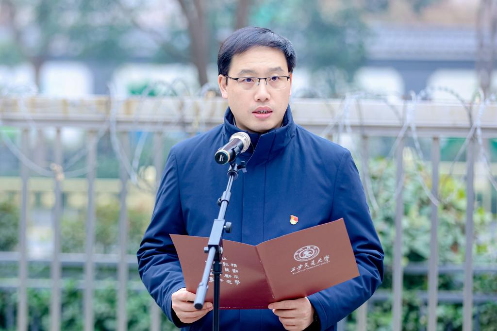 1925年底,交通大学第一个党团组织成立,积极组织领导一批批青年学生投身民族救亡洪流。2025年12月30日,在交通大学党组织成立100周年之际,西安交通大学在西迁广场举办新党员代表入党宣誓活动,团结激励广大师生党员赓续薪火、接续奋斗。校党委副书记孙早出席活动,老党员代表、优秀共产党员代表、新发展师生党员代表和党委组织部、宣传部、教师工作部、研工部、学工部负责同志参加活动。入党宣誓活动由校党委常委、组织部部长周远主持。