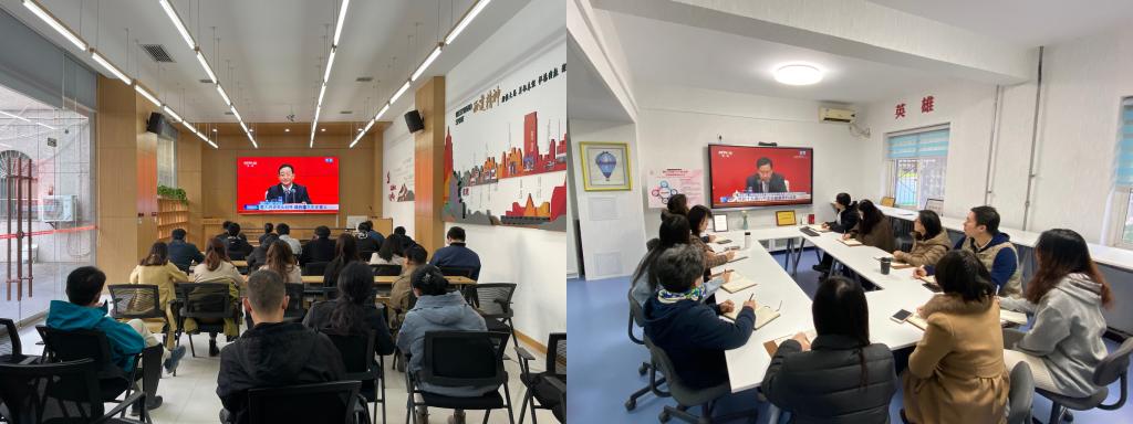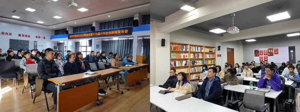 11月12日上午,中共中央举行新闻发布会,介绍党的十九届六中全会精神。学工部、大学生党委组织各书院师生观看新闻发布会,并展开学习讨论。