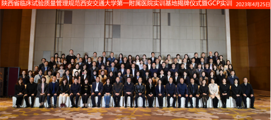 4月25日,陕西省临床试验质量管理规范(GCP)西安交通大学第一附属医院实训基地揭牌仪式暨第一期培训班在我院举行。省药监局党组书记、局长应宏锋,省卫健委党组成员、副主任杨联昌,西安交通大学副校长、第一附属医院院长吕毅,省药监局相关处室直属单位负责人,陕西省药学会及陕西省保健学会相关负责人,省内43家具有临床试验资质的医疗机构负责人和机构办相关人员100余人及线上1千余人参加活动。揭牌仪式由省药监局党组成员、副局长齐惠丽主持。实训基地旨在提升我省临床试验研究水平,规范GCP检查程序和标准,推动我省创新药物、医疗器械研发领域的发展。