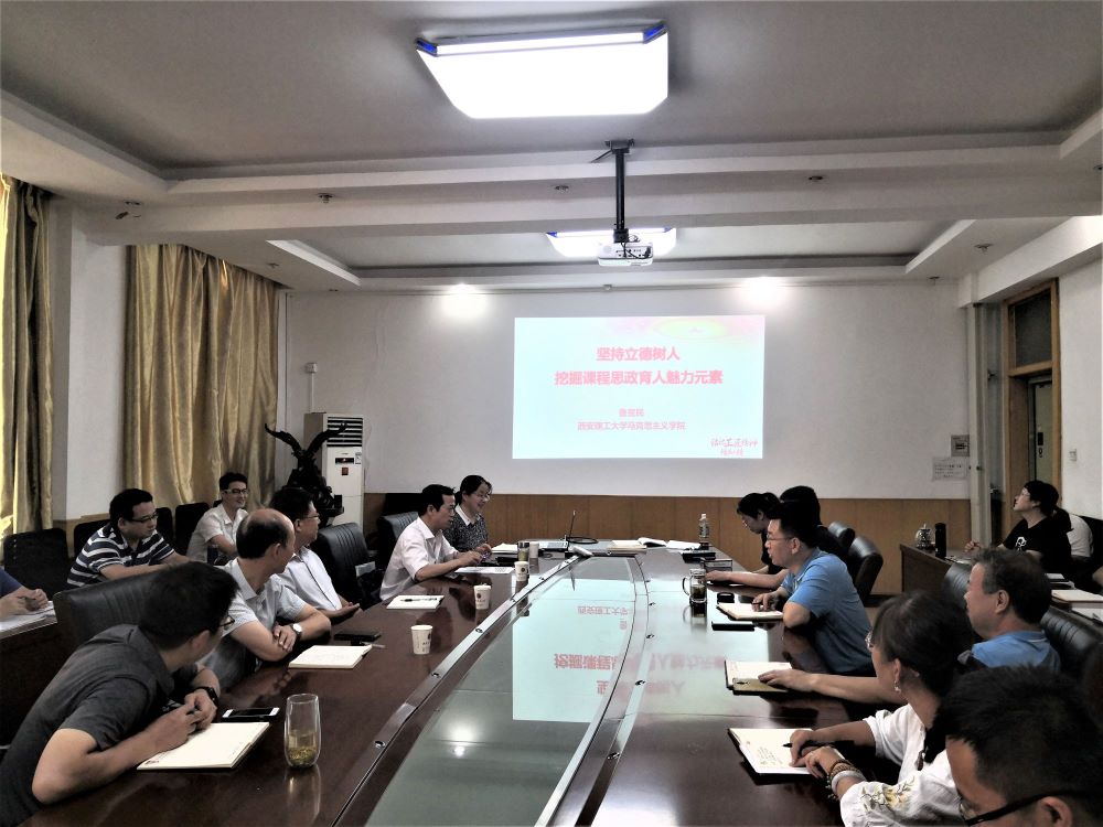 马克思主义学院院长鲁宽民教授则以《坚持立德树人,挖掘课程思政育人魅力元素》为题为大家讲授了课程思政的意义、育人共同体形成以及课程育人实践等内容。他还通过几门专业课程的课程思证案例,并结合2020版材料类专业课程教学大纲修订中课程思政教学目标凝练、课程思政元素挖掘以及课程思政教学实践技巧等和全体教师进行了研讨。