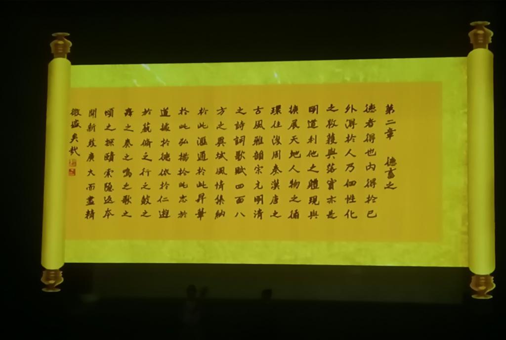 整场节目编排的传承与创新让中华优秀传统文化的博大精深和西安鼓乐的非遗之美相得益彰。演出以中华文化经典《道德经》名句“道生之”“德畜之”“物形之”“势成之”为题,分为四个乐章,每个乐章开篇都做了开宗明义的阐释。四个乐章的内文详细文案和书写均由相关学术背景的专家学家执笔撰写,再由知名书法家手写成书,让观者感受中国书法艺术之美。