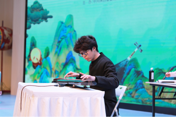 活动中,西安外事学院古琴系主任白金带领学生与西安工业大学中国书法学院学生联袂演出,展示了精彩的古琴演奏与中国书法的完美结合。